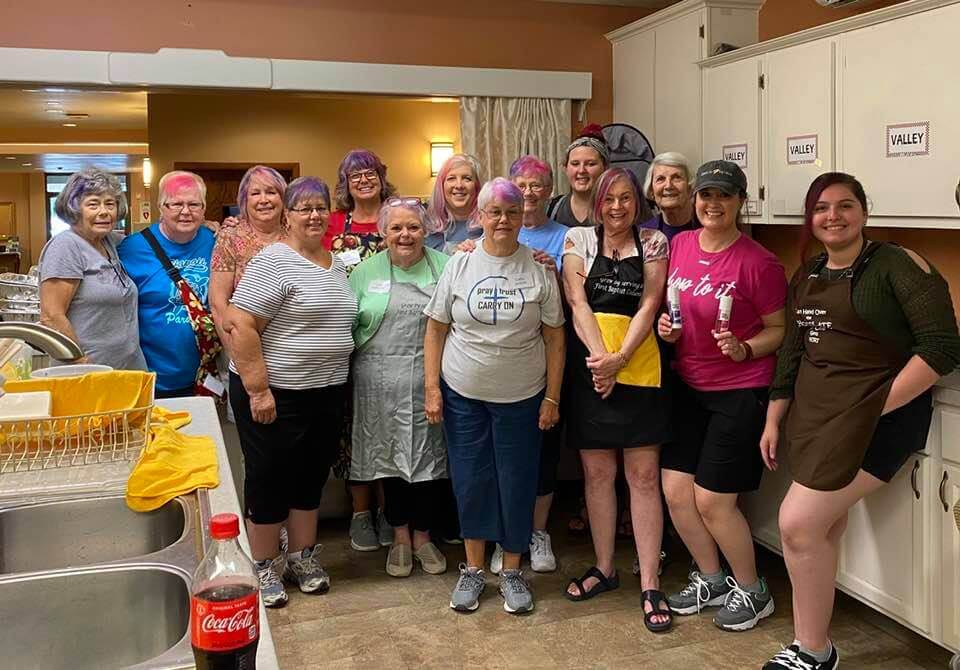 “Builders for Christ trip to Valley Baptist Church in Appleton, Wisconsin. Much was accomplished by our construction team because the Kitchen Crew fed them well!? Seriously we all worked hard but at the same time had lot of fun. The kitchen crew was up at 4:30 so we could start breakfast at 5:30 to serve at 7:00. We got creative to stay awake (but you can see by some of the pictures it didn’t work for all) we dyed our hair, had masquerade parade, celebrated several birthdays, including a big ‘50th’, isn’t that right Andrea Hawkins! The Construction Crew was amazing and wouldn’t stop for a break until they finished a project. A wonderful way to meet and get to know people from different areas, as we had people from Kentucky, South Carolina, North Carolina. California and Michigan. Already looking forward to going next July.”